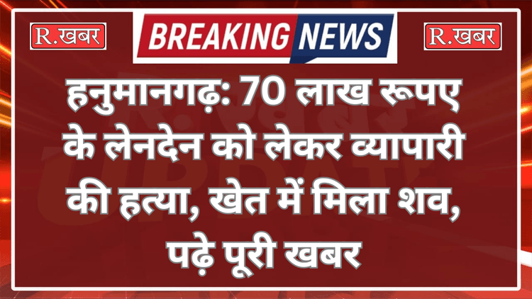R.खबर ब्यूरो। हनुमानगढ़ जिले के भादरा में एक व्यापारी की हत्या का मामला सामने आया है। जानकारी के अनुसार हरियाणा के हिसार जिले में मोहब्बतपुर गांव के निवासी राकेश कुमार का शव शेरपुरा बस स्टैंड के पास स्थित एक खेत में पड़ा हुआ मिला। इस घटना में राकेश कुमार के भाई कुलदीप ने पुलिस थाना में शिकायत दर्ज करवाई है।