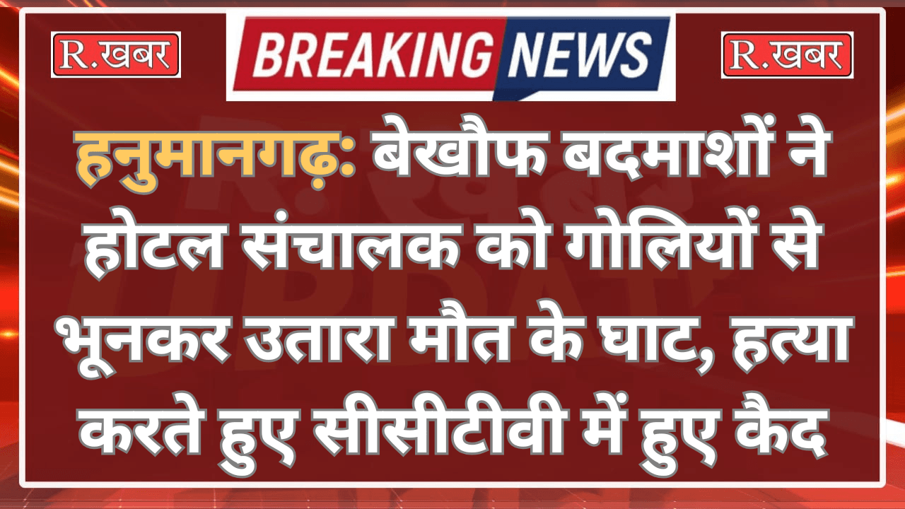 R.खबर ब्यूरो। राजस्थान के हनुमानगढ़ जिले से हैरान कर देने वाला मामला सामने आया है, जहां बेखौफ बदमाशों ने दिनदहाड़े होटल में घुसकर संचालक को गोलियों से भुनकर उसे मौत के घाट उतार दिया और इस दौरान मृतक के बेटे को भी गंभीर चोट आई।