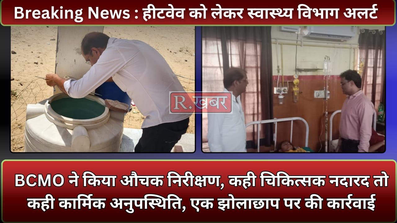 खाजूवाला, खण्ड मुख्य चिकित्सा अधिकारी खाजूवाला डॉ. मुकेश कुमार मीणा द्वारा खण्ड क्षेत्र खाजूवाला व पूगल में हीटवेव से बचाव एवं उपचार की पुख्ता व्यवस्थाएं तथा डेंगु, मलेरिया जैसी मच्छर जनित बीमारियों की रोकथाम हेतु की जा रही एंटी लार्वा गतिविधि सुचारू रूप से जारी रखने सम्बधित मॉनीटरिंग हेतु सीएचसी खाजूवाला, पीएचसी दन्तौर, पीएचसी डेलीतलाई, पीएचसी अमरपुरा व उपकेन्द्र करणीसर भाटियान, सियासर पंचकोषा व उपकेन्द्र रामड़ा आदि संस्थानों का औचक निरीक्षण किया गया।
