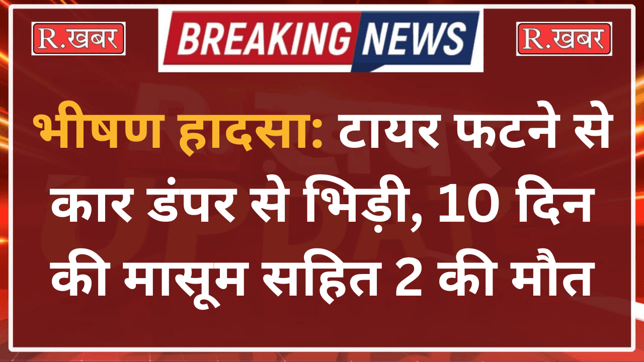 भीषण हादसा: टायर फटने से कार डंपर से भिड़ी, 10 दिन की मासूम सहित 2 की मौत