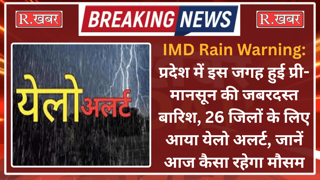 IMD Rain Warning: प्रदेश में इस जगह हुई प्री-मानसून की जबरदस्त बारिश, 26 जिलों के लिए आया येलो अलर्ट, जानें आज कैसा रहेगा मौसम
