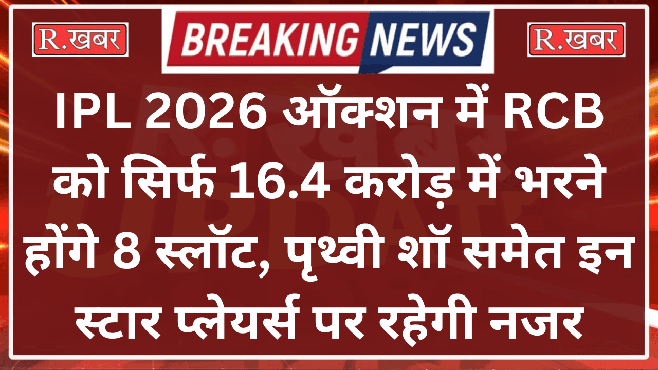 IPL 2026 ऑक्शन में RCB को सिर्फ 16.4 करोड़ में भरने होंगे 8 स्लॉट, पृथ्वी शॉ समेत इन स्टार प्लेयर्स पर रहेगी नजर