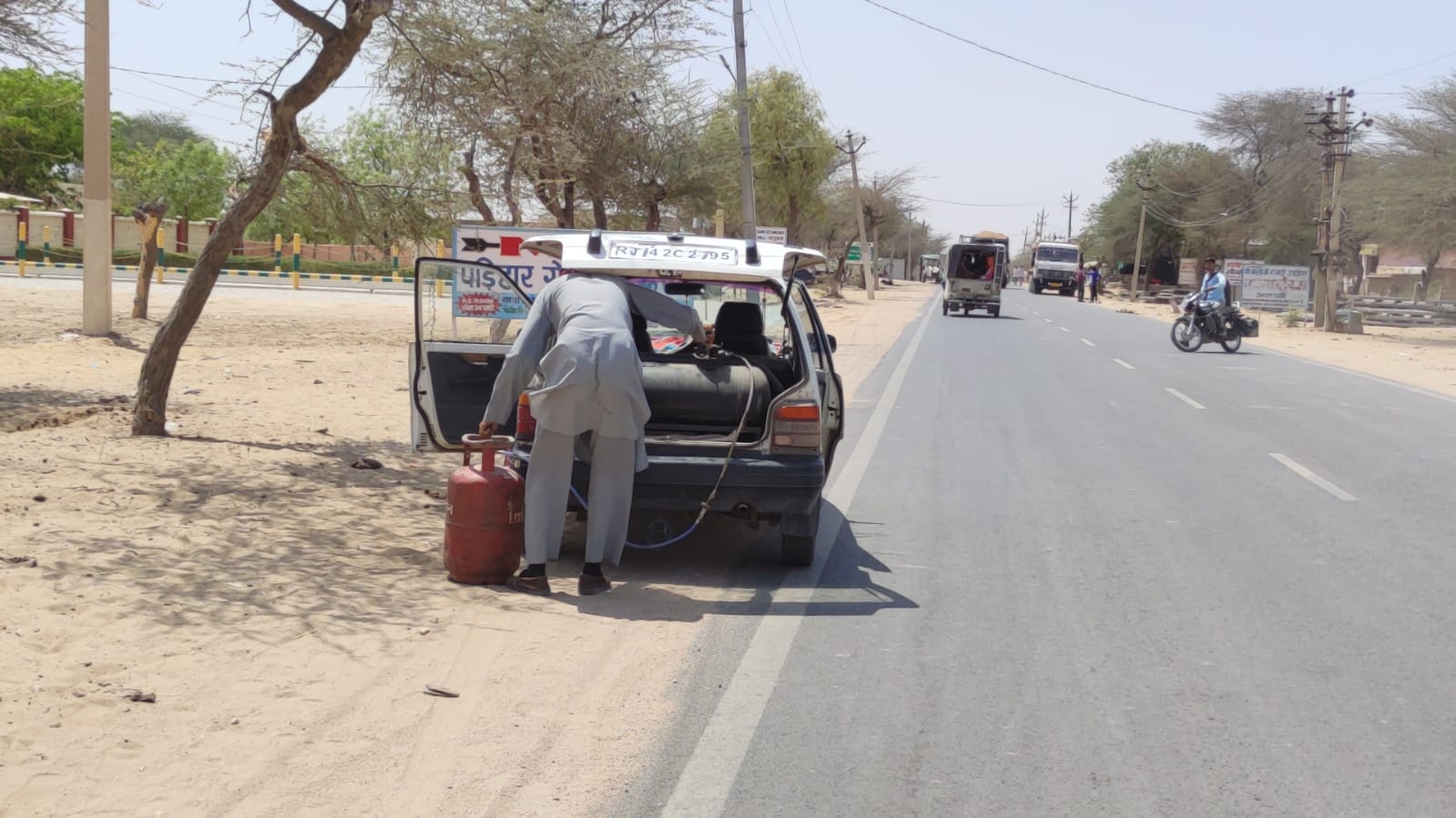 खाजूवाला, क्षेत्र में सरेआम सड़क मार्गों पर गाड़ियों में अवैध रूप से गैस रिफ्लिंग करते हुए देखे जा सकते हैं। ऐसे में ग्रामीण अवैध रूप से गैस रिफलिंग कर हादसों को न्योता दे रहे हैं। ऐसा दर्शय खाजूवाला के सीओ कार्यालय के पास रावला सड़क मार्ग पर शुक्रवार दोपहर को देखा गया जहां सरेआम हाईवे सड़क के किनारे खड़ी एक कार में अवैध रूप से गैस रिफ्लिंग की जा रही थी।