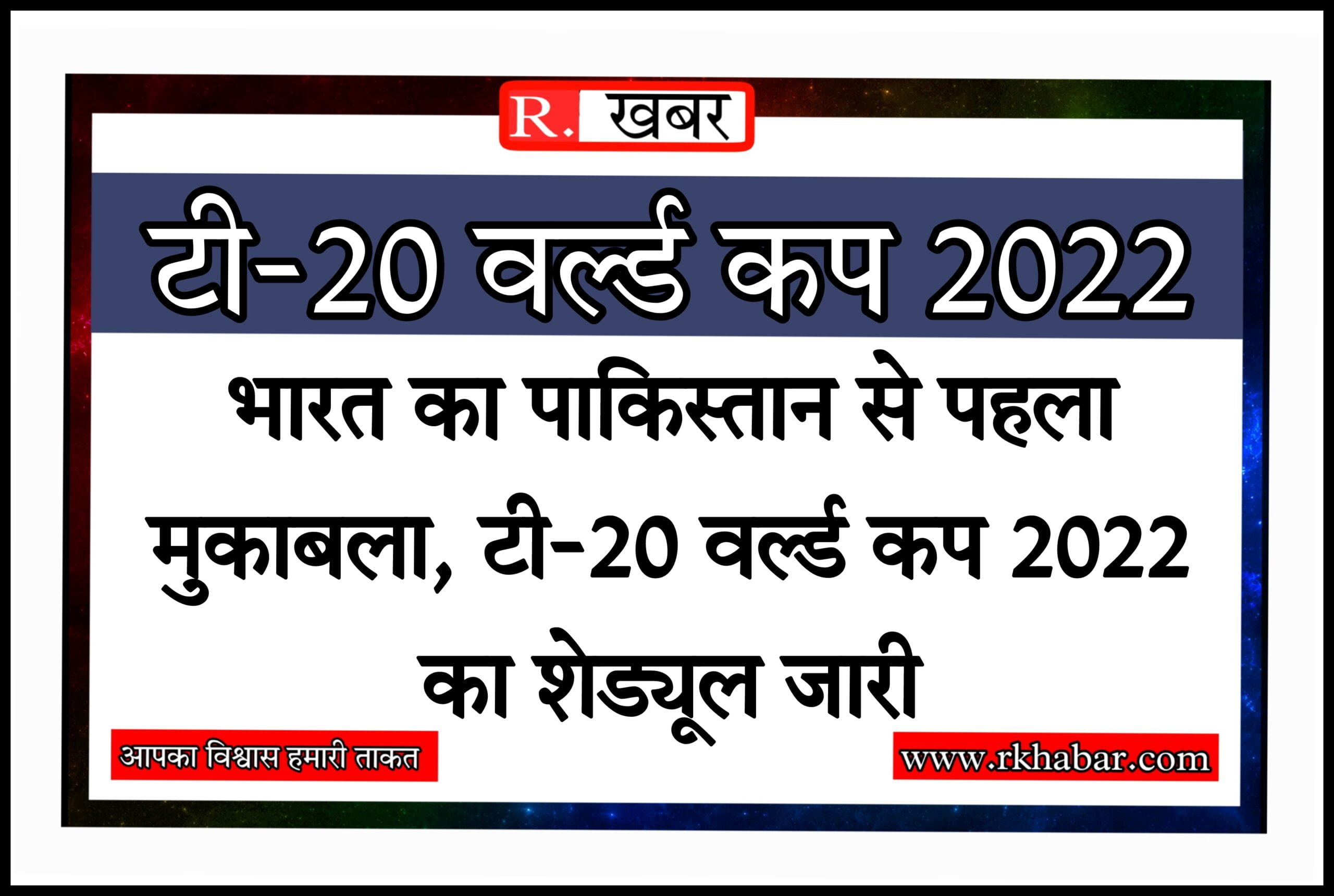 R.खबर, इस बार टी-20 वर्ल्ड कप का आयोजन ऑस्ट्रेलिया में होगा। शुक्रवार को टी-20 वर्ल्ड कप 2022 के कार्यक्रम की घोषणा कर दी है। इस कार्यक्रम के मुताबिक, भारत अपना पहला मुकाबला पाकिस्तान के खिलाफ 23 अक्टूबर को मेलबर्न क्रिकेट ग्राउंड में खेलेगा।