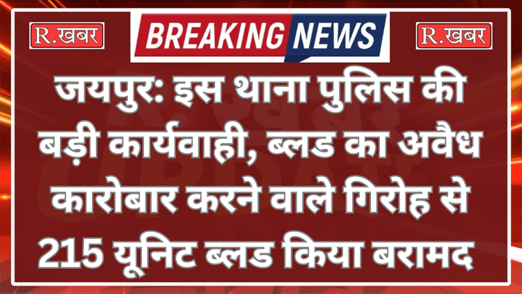 R.खबर ब्यूरो। जयपुर से बड़ी खबर सामने आई है, जंहा जोबनेर थाना पुलिस ने बड़ी कार्रवाई करते हुए ब्लड का अवैध कारोबार करने वाले गिरोह पर शिकंजा कसा है। जानकारी के अनुसार गिरोह के लोगों से करीब 215 यूनिट ब्लड बरामद किया है।