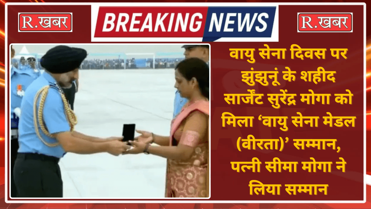 वायु सेना दिवस पर झुंझुनूं के शहीद सार्जेंट सुरेंद्र मोगा को मिला ‘वायु सेना मेडल (वीरता)’ सम्मान, पत्नी सीमा मोगा ने लिया सम्मान