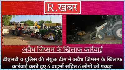 पुलिस के अनुसार पुलिस महानिरीक्षक रेंज बीकानेर ओमप्रकाश, जिला पुलिस अधीक्षक अनूपगढ राजेन्द्र कुमार, अतिरिक्त पुलिस अधीक्षक रायसिंहनगर किशोर बुटोलिया, वृताधिकारी खाजूवाला विनोद कुमार के सुपरविजन में डीएसटी टीम अनूपगढ़ व पुलिस थाना छतरगढ़ की संयुक्त टीम द्वारा 11 सितंबर मध्य रात्रि को खाजूवाला के चक 6 एसजेएम में अराजीराज व वन विभाग की भूमि पर अवैध जिप्सम खनन की सूचना पर दोनों टीमों द्वारा संयुक्त कार्रवाई कर दो जेसीबी, दो कैंपर गाड़ी, एक लोडर ट्रैक्टर बिना नंबर, एक ट्रैक्टर ट्राली बिना नंबर मौके पर मिले। ट्रैक्टर ट्राली में लगभग 1 टन अवैध जिप्सम भरा हुआ था। मौके पर खनन कार्य चल रहा था। जिसपर इन वाहन के साथ वहाँ कार्य कर रहे 6 जानो को भी पुलिस ने पकड़ा है। जिनमे शिवकुमार बिश्नोई निवासी 6 एसजेएम, देवीलाल नायक निवासी चक 2 जेएसएम घड़साना, देवीलाल कुमार निवासी 2 जीडी घड़साना, इमीलाल बिश्नोई निवासी आनंदगढ़, मुकेश जाट निवासी अजीतमाना लूणकरणसर व सुभाष चंद्र कुम्हार निवासी नई मंडी घड़साना को डिटेन कर थाने आए व वाहनों को थाना परिसर में खड़ा किया। अग्रिम कार्रवाई के लिए खनन विभाग बीकानेर को सूचना दी गई है।
