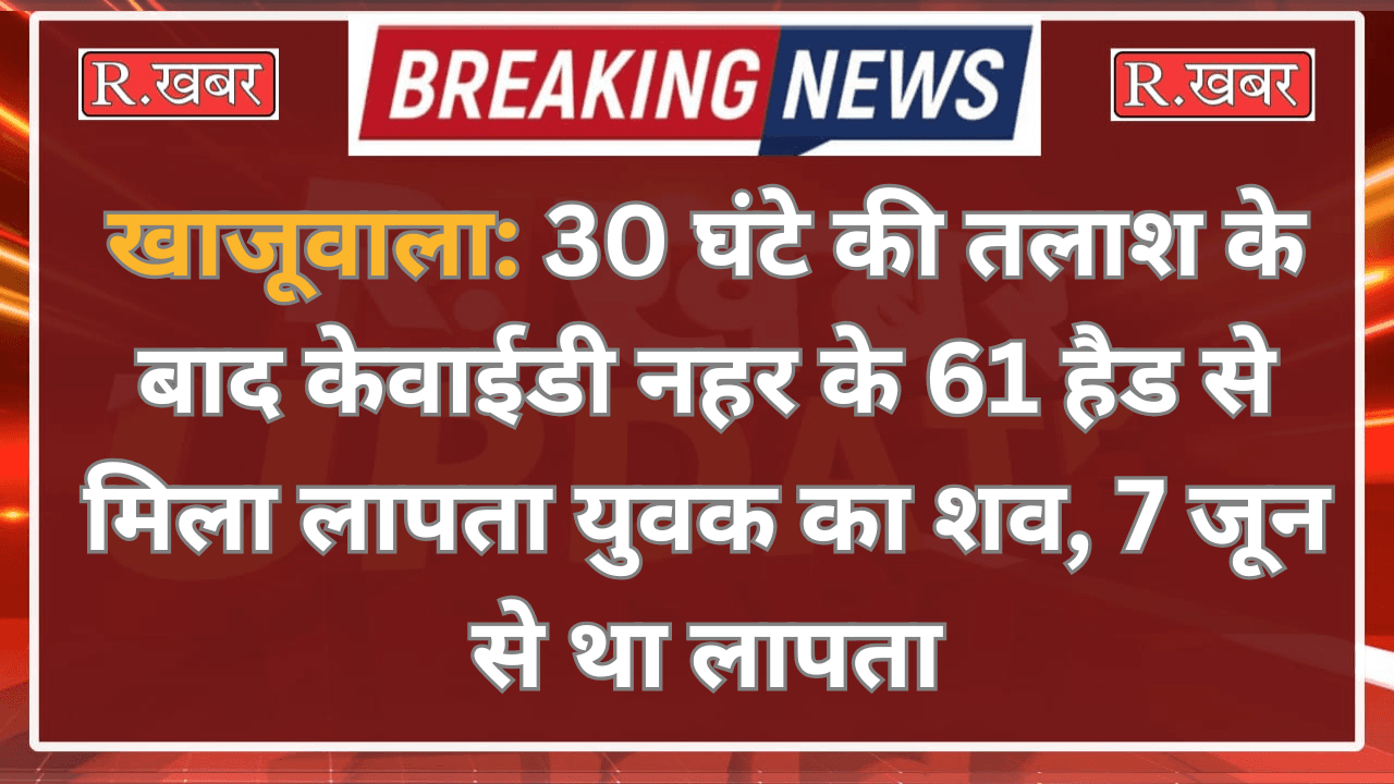 खाजूवाला: 30 घंटे की तलाश के बाद केवाईडी नहर के 61 हैड से मिला लापता युवक का शव, 7 जून से था लापता