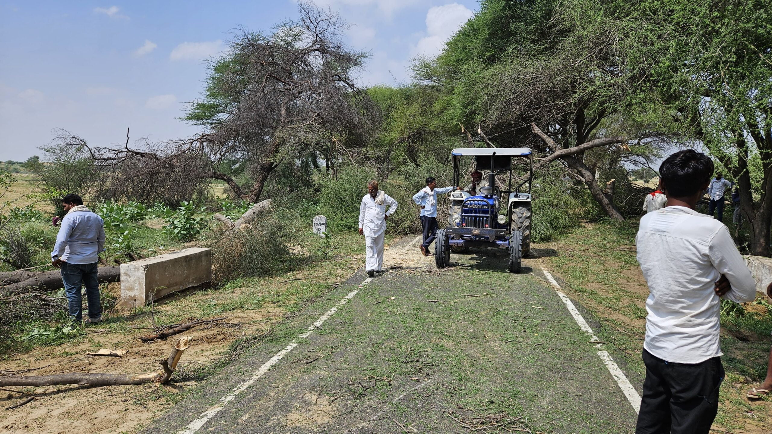 खाजूवाला, खाजूवाला के ग्रामीण क्षेत्र में रविवार रात्रि को आई तेज आंधी व बारिश के कारण कई स्थानों पर पेड़ टूटकर सड़क पर गिर गए। जिससे यातायात बाधित हो गया।