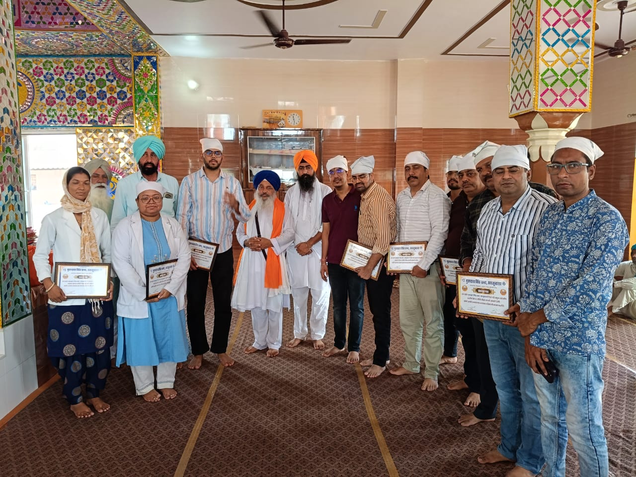 खाजूवाला, श्री गुरुद्वारा सिंह सभा रावला रोड़ खाजूवाला में रविवार को तीसरा विशाल निशुल्क कैंप गुरुद्वारा सिंह सभा और बीकानेर के विभिन्न डा के संयुक्त तत्वाधान में फ्री मेडिकल शिवर लगाया गया। इस शिविर में 282 रोगियों ने परामर्श लिया गुरुद्वारा प्रबंधक कमेटी ने सभी आने वाले मरीजों व संगत के लिए लंगर की और ठंडे पानी की व्यवस्था की खाजूवाला सरबत दा -भला की टीम ने पूरी व्यवस्था को संभाला गुरुद्वारा प्रबंधक कमेटी प्रधान बलदेव सिंह बराड़ व डा जे एस संधू ने सभी डा की टीम को परशंसा पत्र देखकर सम्मानित किया। इस कैंप में हार्ट और गठिया रोग विशेषज्ञ डॉ. मुकेश पन्नू, ऑर्थ और ज्वाइंट रोग विशेषज्ञ डॉ. मोहमद आरिफ,लीवर पेट रोग विशेषज्ञ डॉ. निशांत वर्मा, स्त्री रोग विशेषज्ञ डा कुलसुम सिद्धकी और शल्य चिकित्सा विशेषज्ञ डा सुनील सैनी, व नर्सिंग स्टाफ ने अपनी सेवाएं दी। इस कैंप का आयोजन बीकानेर के विभिन्न डा टीम और,सरबत दा- भला टीम एवं गुरुद्वारा प्रबंधक कमेटी द्वारा किया गया। गुरुद्वारा सचिव पुष्पेंद्र सिंह ने गुरुद्वारा प्रबंधक कमेटी द्वारा सभी मेडिकल टीम आई हुई साथ संगत व मरीजो और सभी सहयोग कर्ताओं का आभार प्रकट किया। यह शिविर हर अमावस पर गुरुद्वारा सिंह सभा में निरंतर जारी रहेगा।
