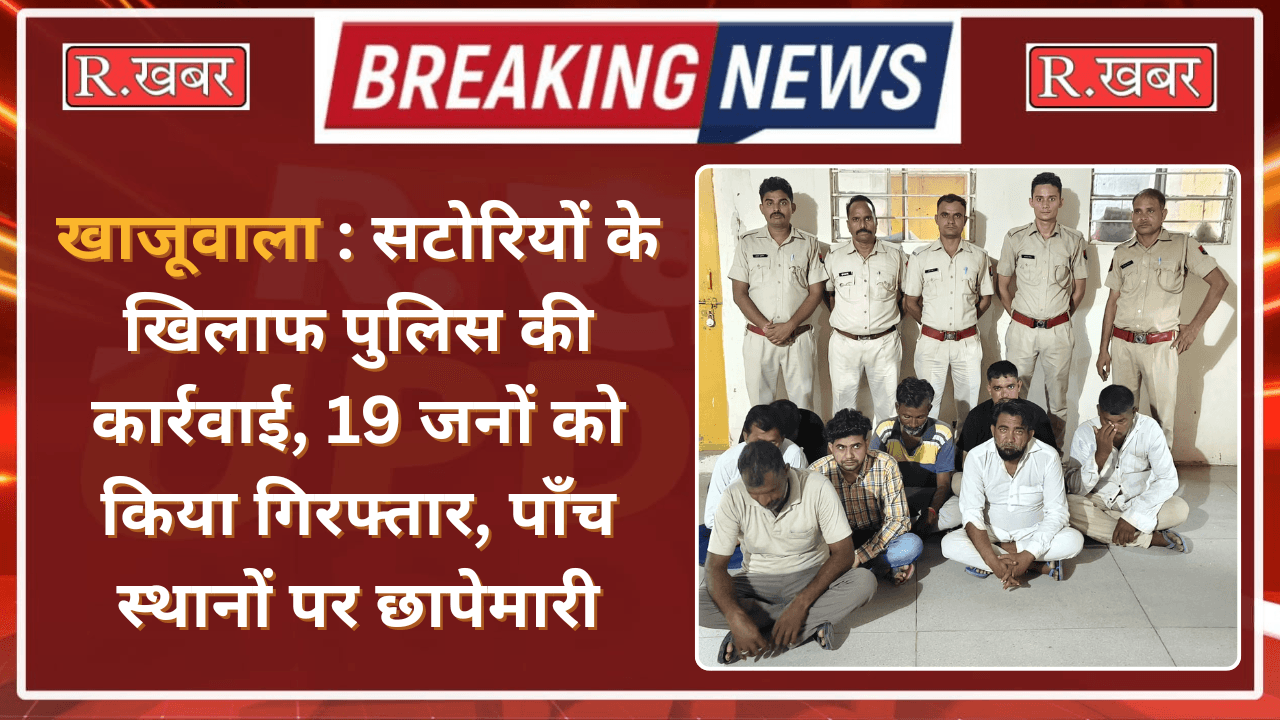 खाजूवाला, खाजूवाला पुलिस ने रविवार को सटोरियों के खिलाफ पाँच स्थानों पर छापेमारी करते हुए 19 जनों को गिरफ्तार कर किया है तथा पुलिस द्वारा पाँच अलग-अलग मुकदमें भी दर्ज किए है।