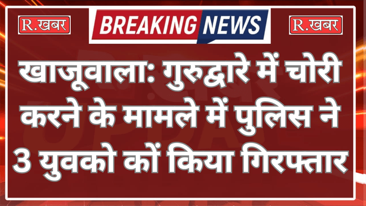 R.खबर ब्यूरो। खाजूवाला से बड़ी खबर सामने आई है, जंहा एक गुरुद्वारा में चोरी करने के मामले में पुलिस ने तीन युवकों को गिरफ्तार किया है। जानकारी के अनुसार चोरी की वारदात को अंजाम देने के लिए उपयोग में ली गई बाइक को भी पुलिस द्वारा जब्त कर लिया गया है। चोरी के महज चौबीस घंटे में पुलिस ने इन युवकों को हिरासत में ले लिया था, जिन्हें रविवार को गिरफ्तार किया गया।