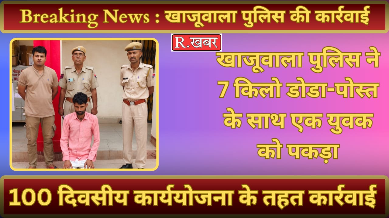 खाजूवाला, खाजूवाला पुलिस ने 100 दिवसीय कार्य योजना के तहत अवैध डोडा पोस्त सहित एक युवक को गिरफ्तार किया है।
