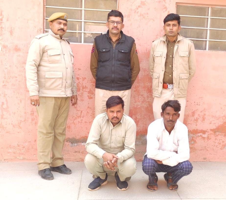 थानाधिकारी अरविंद सिंह शेखावत ने बताया की पुलिस टीम के द्वारा मुखबिर की सूचना पर दो अलग-अलग कार्रवाई करते हुए दो आरोपियों से 5-5 लीटर अवैध हथकढ़ शराब बरामद की। पुलिस ने बताया कि हेड कांस्टेबल महेन्द्र विश्नोई के द्वारा 8 केवाईडी नर्सरी के पास से 25 वर्षीय लालचन्द पुत्र चैनाराम मेघवाल निवासी 13 केवाईडी को 5 लीटर शराब के साथ गिरफ्तार किया। वहीं दूसरी कार्रवाई हेड कांस्टेबल महेन्द्र सिंह मीणा के द्वारा 8 केवाईडी आबादी के पास से 25 वर्षीय रामचन्द्र पुत्र लूणाराम मेघवाल 13 केवाईडी को गिरफ्तार किया। पुलिस ने दोनों आरोपियों को गिरफ्तार कर राजस्थान आबकारी अधिनियम के तहत मुकदमा दर्ज कर जांच शुरू की है।