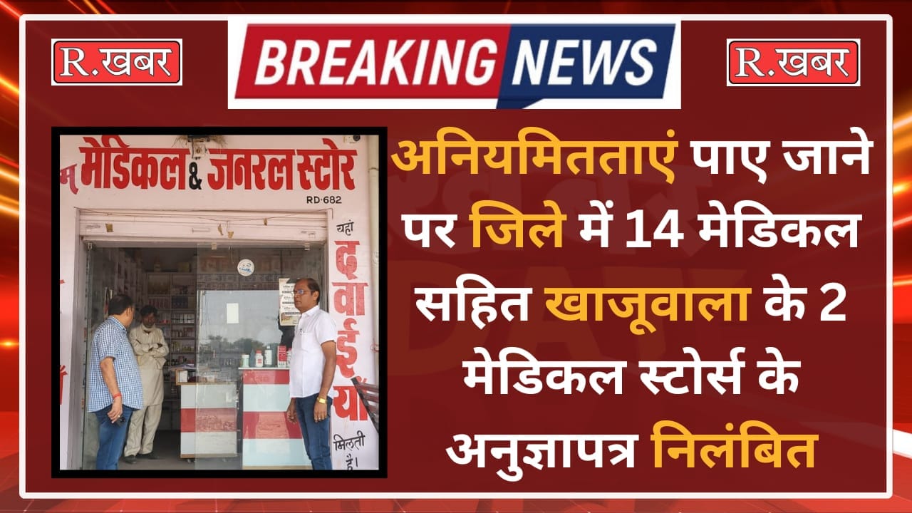 बीकानेर, जांच के दौरान विभिन्न अनियमितताएं पाए जाने पर जिले भर में 14 मेडिकल स्टोर्स के अनुज्ञापत्र निलम्बित किये गए हैं।