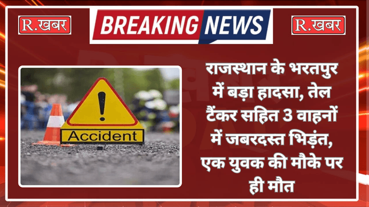 R.खबर ब्यूरो। राजस्थान के भरतपुर जिले से बड़ी खबर सामने आई है, जंहा आज सुबह भीषण सड़क हादसा हो गया। जानकारी के अनुसार तेल टैंकर सहित तीन वाहन आपस में टकरा गए। इस हादसे में एक युवक की मौत हो गई। मौके पर पहुंची पुलिस ने शव को सरकारी अस्पताल की मोर्चरी में रखवा दिया है।