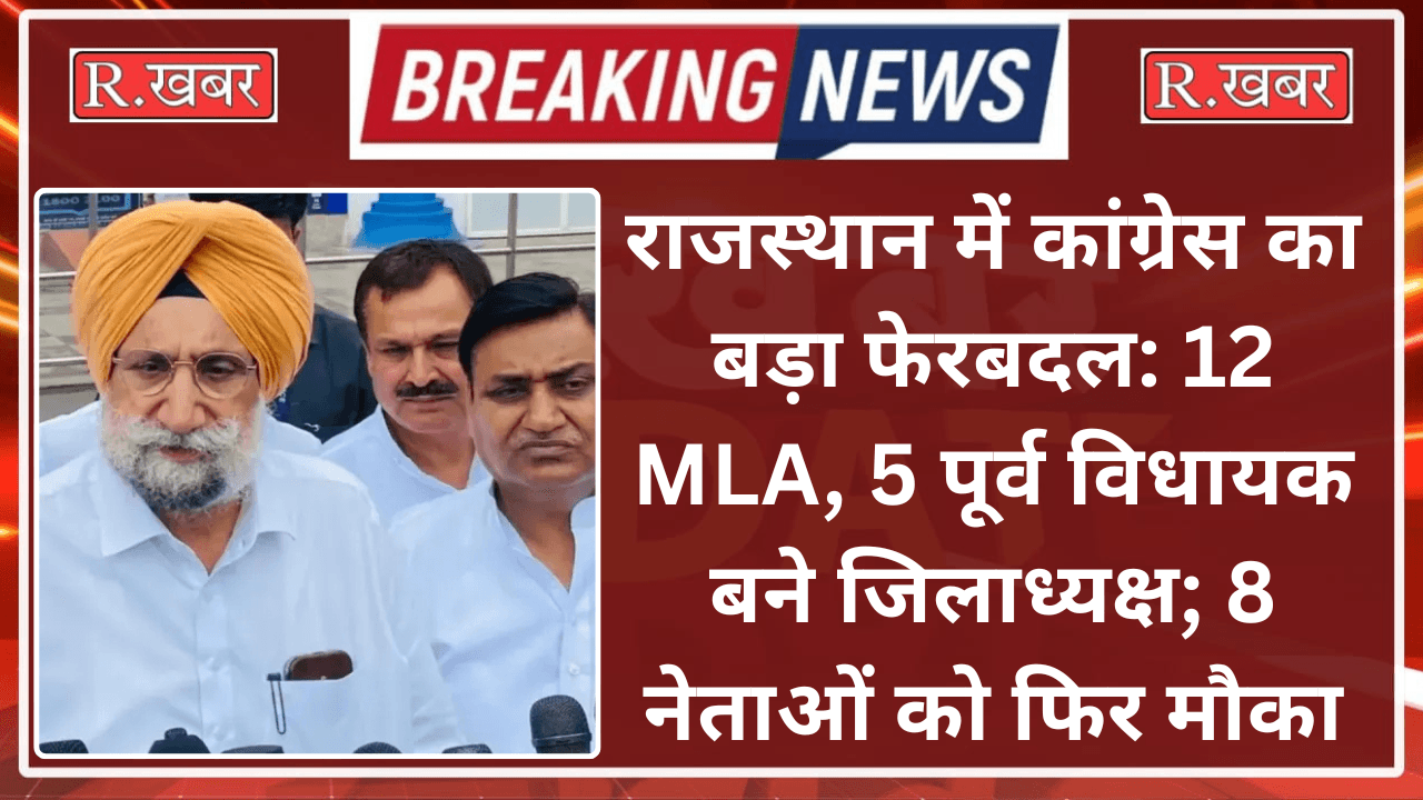 R.खबर ब्यूरो। जयपुर, कांग्रेस ने संगठन में बड़ा फेरबदल करते हुए 50 में से 45 जिलाध्यक्षों की नई सूची जारी कर दी है। इनमें 12 मौजूदा विधायक और 5 पूर्व विधायक शामिल हैं। कई जिलों में पुराने नेताओं को फिर से जिम्मेदारी सौंपी गई है, जिनमें प्रदेशाध्यक्ष गोविंद सिंह डोटासरा का गृह जिला सीकर भी शामिल है।