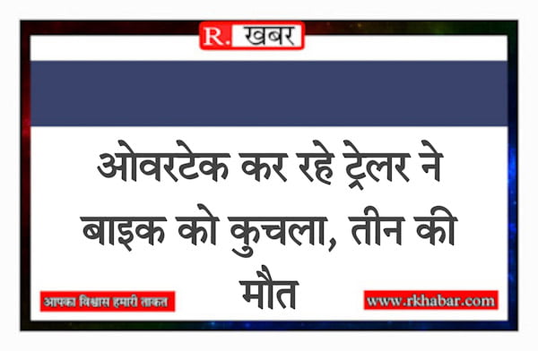बीकानेर, गंगाशहर थाना क्षेत्र के उदयरामसर के पास गुरुवार देर रात ट्रेलर ने ओवरटेक करते समय एक बाइक को टक्कर मार दी। हादसे में बाइक सवार तीन युवकों की मौत हो गई। चालक ट्रेलर को भगा ले गया, जिसे पुलिस ने नाकाबंदी कर नोखा के पास पकड़ लिया।
