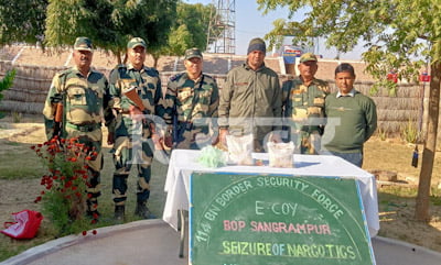 खाजूवाला भारत-पाक अंतरराष्ट्रीय सीमा चौकी संग्रामपुर के पास बीएसएफ ने बड़ी कार्रवाई करते हुए 2 किलो हेरोइन पकड़ी है। वही बताया जा रहा है कि यह पाकिस्तान की ओर से ड्रोन के माध्यम से भारतीय सीमा में डाली गई है। जिसको लेकर अब बीएसएफ, पुलिस और गुप्तचर एजेंसियां सक्रिय हो चुकी है। 2 किलो हेरोइन की बाजारी कीमत लगभग 2 करोड रुपए की बताई जा रही है। हेरोइन मिलने के बाद बीएसएफ व पुलिस के आला अधिकारी भी मोके पर पहुंचे। घटना मंगलवार की बताई जा रही है।