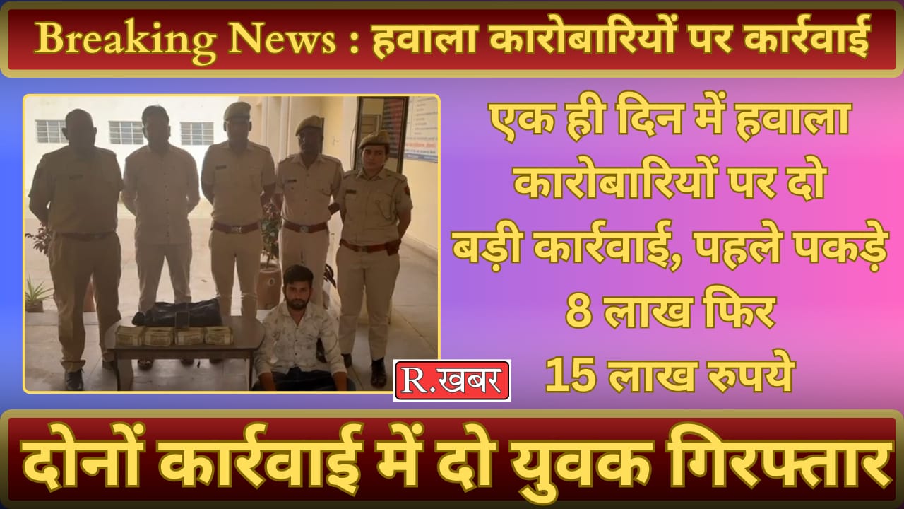वही दूसरी ओर जिला पुलिस की साइबर सेल एक्टिव रहकर दूसरी बड़ी कार्यवही को अंजाम दिया है। एसपी के डायरेक्ट अंडर में रहने वाली डीएसटी टीम ने दोपहर में आठ लाख की नकदी जब्ती की कार्रवाई की, इसके तुरंत बाद शाम को एक और हवाला पर कार्रवाई की है। जिसमें करीब 15 लाख की नकदी जब्त की है। एसपी के निर्देशन में बीछवाल पुलिस और डीएसटी ने मिलकर इस कार्रवाई को अंजाम दिया है। पुलिस ने इस कार्रवाई में प्रकाश पुत्र ओमप्रकाश निवासी अमर सिंह पुरा हाल सर्वोदय बस्ती बीकानेर से करीब पंद्रह लाख की नकदी जब्त की है। आरोपी से कोई संतोषजनक जवाब नहीं मिलने पर उससे पूछताछ की जा रही है। वही आयकर विभाग के अधिकारियो को सूचित किया जा रहा है।