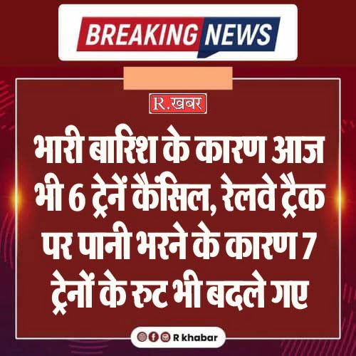 भारी बारिश के कारण आज भी 6 ट्रेनें कैंसिल, रेलवे ट्रैक पर पानी भरने के कारण 7 ट्रेनों के रुट भी बदले गए