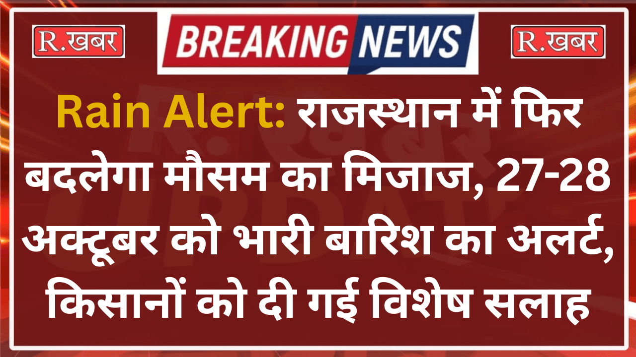 Rain Alert: राजस्थान में फिर बदलेगा मौसम का मिजाज, 27-28 अक्टूबर को भारी बारिश का अलर्ट, किसानों को दी गई विशेष सलाह