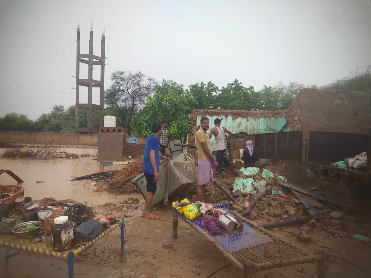 खाजूवाला. क्षेत्र में बरसात विशेषकर गरीबों के लिए आफत बनकर आई और गरीबों के आशियाने भी उजड़ गये। गुरूवार देर रात्रि यानि कि शुक्रवार अलसुबह 2 मुसलाधार बरसात ने जहां पूरे क्षेत्र को पूरी तरह से तर-बत्तर कर दिया वहीं गरीब व्यक्तियों के घर टूट गये। कुछ लोगों के कच्चे मकान गिर गये तो कुछ लोगों के मकानों की दीवारें गिर गई। ग्राम पंचायत 7 पीएचएम में सरपंच प्रतिनिधि ओमप्रकाश मेघवाल ने बताया कि 2 पीएचएम में प्रेम प्रकाश भील, नारायण भील पुत्र मोतीराम भील के मकान गिर गये। चक 7 पीएचम में श्रवण राम पुत्र सुरजाराम सुथार, चूनाराम पुत्र मानाराम मेघवाल, केसराराम पुत्र छोगाराम मेघवाल, नेताराम, भंवरलाल पुत्र पेमाराम, धर्माराम पुत्र पेमाराम मेघवाल, बेरियांवाली में तुलसीदेवी आदि के कच्चे मकान तेज बरसात में बह गये। तेज बरसात के कारण घरों में सामान ही दब गया। घर में रखे बर्तन, बिस्तर तथा खाने-पीने की वस्तुऐं ही मकानों में दब गये। माधोडिग्गी ग्राम पंचायत में भी कुछ लोगों के कच्चे मकान गिर गये वहीं कुछ लोगों के पक्के मकानों को भी नुकसान हुआ है। ग्राम पंचायत 17 केवाईडी सरपंच प्रतिनिधि सुरेन्द्र कुमार सिंवर ने बताया कि 17 केवाईडी में नायबसिंह के पक्के मकान छत गिर गई जिससे उनके घर का समस्त सामान दब गया उनकी विधवा पत्नि को सुरक्षित स्थान पर बैठाया। शंकर टेलर, किशनाराम के मकान की भी मकान की छत गिर गई 12 केवाईडी में मोहम्मद शरीफ के पक्के मकानों की छत गिर गई। क्षेत्र की बहुत ऐसी पंचायतें हैं जहां ग्रामीणों के कच्चे सैंकड़ों मकानों की छतें और दीवारें गिर गई और पक्के मकानों को भी नुकसान हुआ है। प्रशासन को चाहिए कि सही सर्वे करवाकर गरीबों को मुआवजा दिलवाया जावे। अभी भी तेज बरसात के आसार बने हुए हैं और प्रशासन को अलर्ट मोड़ पर रहते हुए काम करना होगा। पटवारियों को क्षेत्र में भेज कर वास्तविक व्यक्ति जिसका नुकसान हुआ है उसकी रिपोर्ट बनाकर उच्चाधिकारियों तक पहुंचवाई जाये जिससे कि गरीबों को भला हो सके।