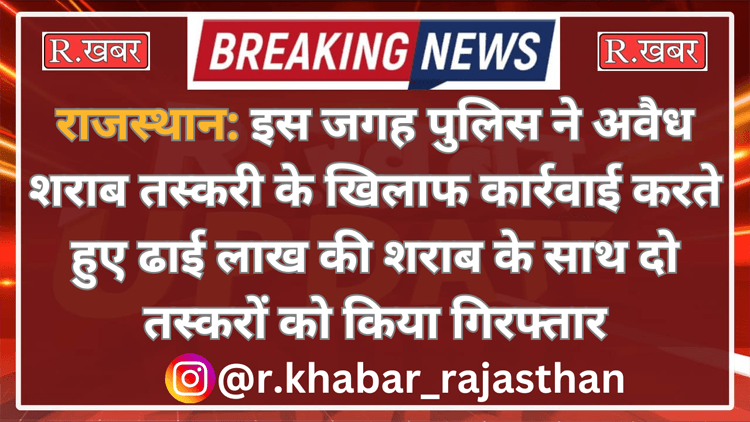 R.खबर ब्यूरो। राजस्थान के डूंगरपुर जिले से बड़ी खबर सामने आई है, जंहा धम्बोला थाना पुलिस ने अवैध शराब तस्करी के खिलाफ कार्रवाई को अंजाम देते हुए एक पिकअप को जब्त किया है। पुलिस ने पिकअप से ढाई लाख रूपये की शराब को बरामद करते हुए दो तस्करों को गिरफ्तार किया है। पुलिस आरोपियों से पूछताछ कर रही है।