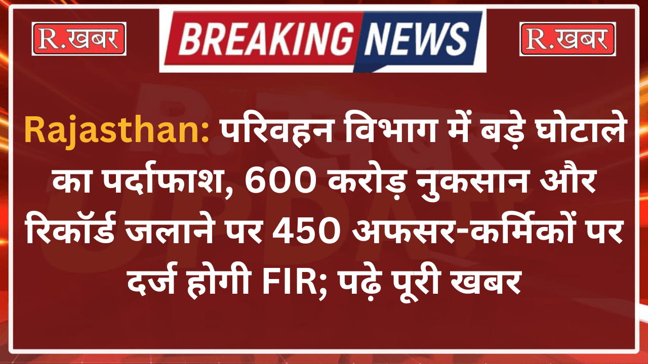 Rajasthan: परिवहन विभाग में बड़े घोटाले का पर्दाफाश, 600 करोड़ नुकसान और रिकॉर्ड जलाने पर 450 अफसर-कर्मिकों पर दर्ज होगी FIR; पढ़े पूरी खबर