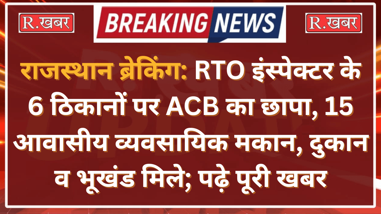 राजस्थान ब्रेकिंग: RTO इंस्पेक्टर के 6 ठिकानों पर ACB का छापा, 15 आवासीय व्यवसायिक मकान, दुकान व भूखंड मिले; पढ़े पूरी खबर
