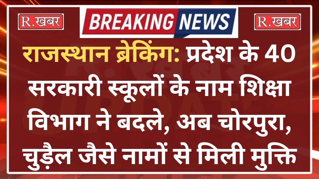राजस्थान ब्रेकिंग: प्रदेश के 40 सरकारी स्कूलों के नाम शिक्षा विभाग ने बदले, अब चोरपुरा, चुडै़ल जैसे नामों से मिली मुक्ति