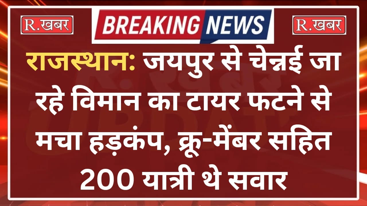 R.खबर ब्यूरो। राजस्थान की राजधानी जयपुर से बड़ी खबर सामने आई है, यंहा चेन्नई जा रहे विमान का टायर फटने से यात्रियों में हड़कंप मच गया। हैरान कर देने वाली बात ये है कि इस घटना के बारे में करीब ढाई घंटे बाद पता चला। इसके बाद चेन्नई एयरपोर्ट पर विमान की इमरजेंसी लैंडिंग करवाई गई।