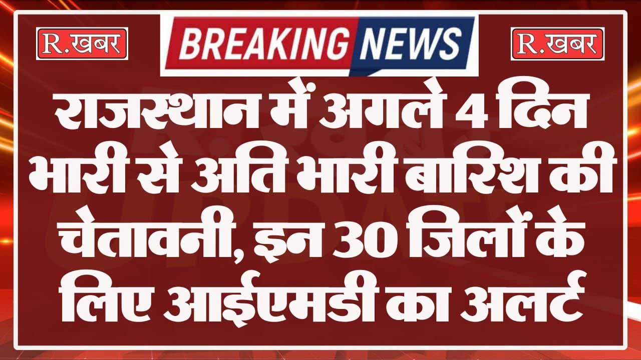 राजस्थान में अगले 4 दिन भारी से अति भारी बारिश की चेतावनी, इन 30 जिलों के लिए आईएमडी का अलर्ट