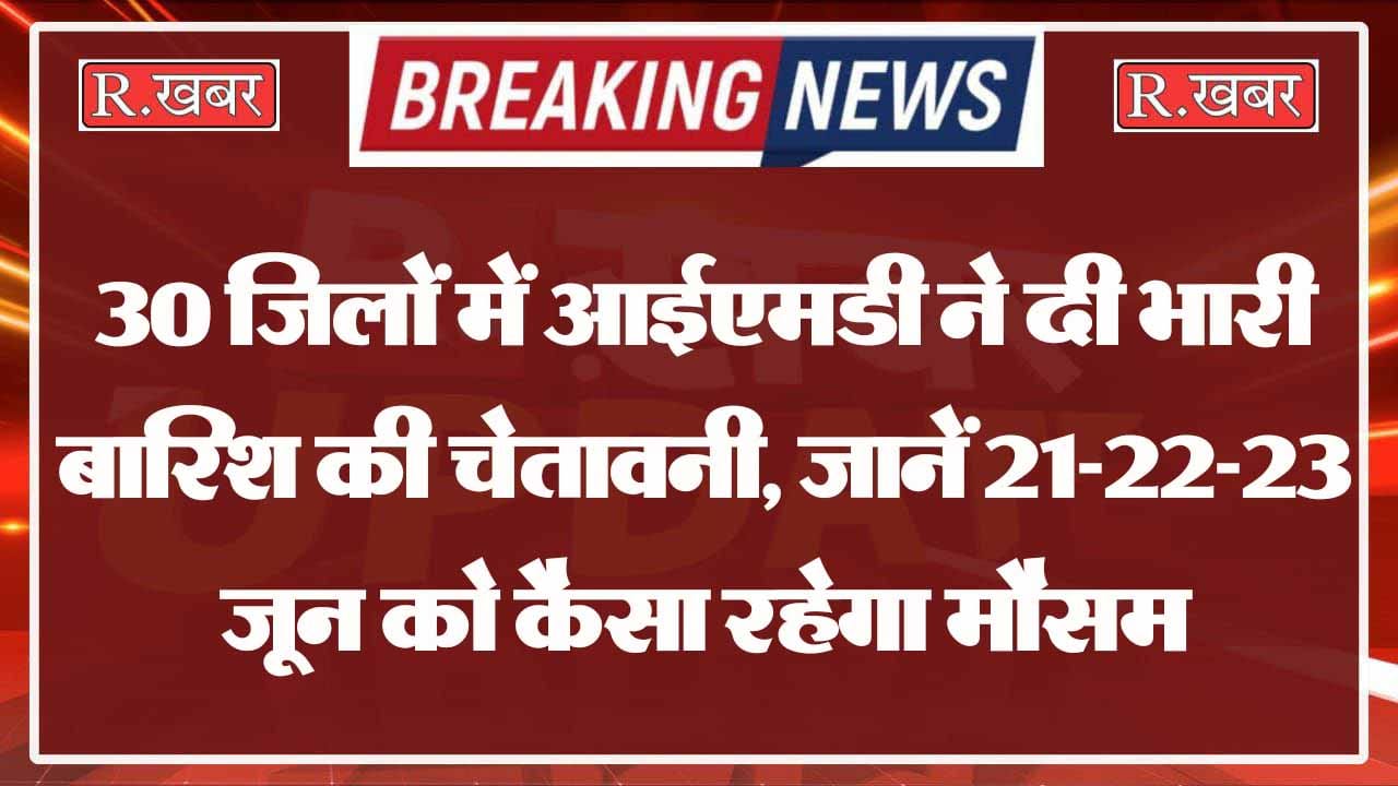 30 जिलों में आईएमडी ने दी भारी बारिश की चेतावनी, जानें 21-22-23 जून को कैसा रहेगा मौसम