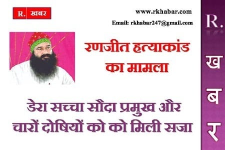 R.खबर न्यूज़, रणजीत सिंह हत्याकांड में अदालत ने डेरा सच्चा सौदा के प्रमुख राम रहीम समेत 5 अन्य दोषियों को उम्रकैद की सजा सुनाई। इस केस में राम रहीम के अलावा बाकी चार दोषियों के नाम जसबीर, अवतार, कृष्ण लाल और सबदिल है। पंचकूला में CBI जज सुशील गर्ग ने राम रहीम पर 31 लाख रूपए का जुर्माना भी लगाया। बाकी चारों दोषियों पर 50-50 हजार रूपए का जुर्माना लगाया गया। राम रहीम को इससे पहले पत्रकार रामचंद्र छत्रपति हत्याकांड में भी उम्रकैद की सजा हो चुकी है। इसके अलावा दो साध्वियों के यौन शोषण मामले में भी राम रहीम को 10-10 साल की सजा हो चुकी है।