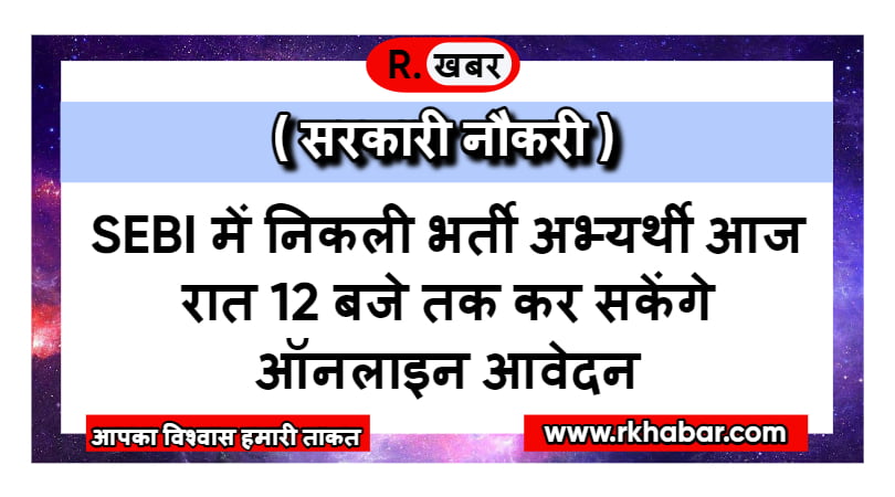 R.खबर, सिक्योरिटी एक्सचेंज बोर्ड ऑफ इंडिया यानी SEBI ने ऑफिसर ग्रेड-A के 120 पदों पर भर्ती निकाली है। जिसमें जर्नल स्ट्रीम, लीगल स्ट्रीम, इन्फॉर्मेशन टेक्नोलॉजी स्ट्रीम, रिसर्च स्ट्रीम और राजभाषा स्ट्रीम के लिए असिस्टेंट मैनेजर पद के लिए आवेदन मांगे गए हैं। अभ्यर्थी SEBI की आधिकारिक वेबसाइट sebi.gov.in पर जाकर आज रात 12 बजे तक ऑनलाइन आवेदन कर सकते हैं।