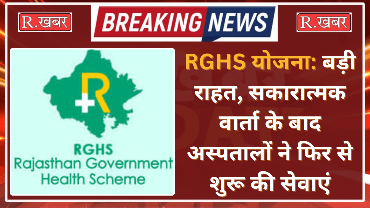 R.खबर ब्यूरो। राजस्थान गवर्नमेंट हैल्थ स्कीम (आरजीएचएस) के तहत सूचीबद्ध अस्पतालों ने चिकित्सा एवं स्वास्थ्य मंत्री गजेंद्र सिंह खींवसर के साथ हुई सकारात्मक वार्ता के बाद बुधवार दोपहर से सेवाएं फिर से शुरू कर दीं। इस फैसले से लाखों लाभार्थियों को बड़ी राहत मिलेगी।