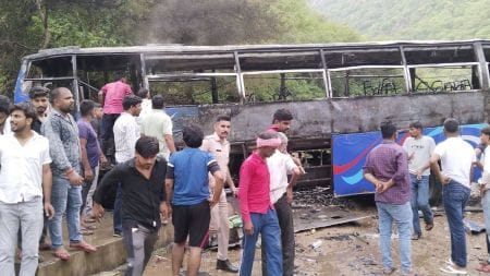 मनसा माता में शुक्रवार को गुप्त नवरात्र की नवमी पर सवामणि कार्यक्रम में शामिल होने आए श्रद्धालुओं से भरी बस अनियंत्रित होकर विद्युत पोल से टकरा गई। टक्कर के बाद बस में आग लग गई। इससे एक श्रद्धालु धूड़ सिंह की मौत हो गई, जबकि चालक सहित 21 लोग गंभीर रूप से घायल हो गए। पूरी बस जलकर राख हो गई। घायलों को झुंझुनूं और सीकर रेफर किया गया है।