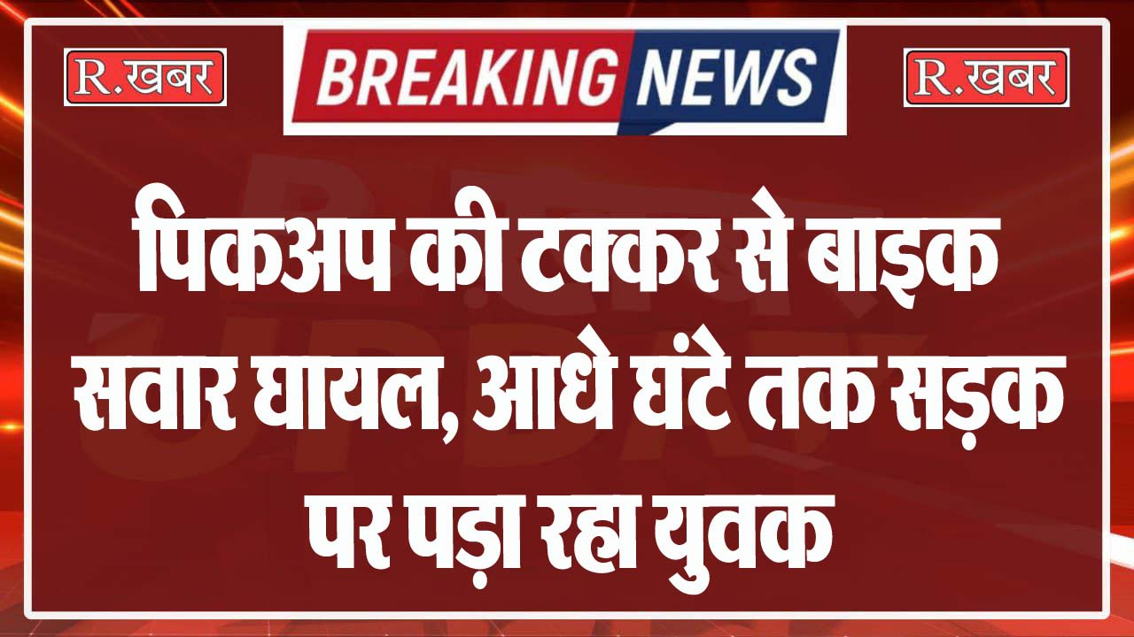 पिकअप की टक्कर से बाइक सवार घायल, आधे घंटे तक सड़क पर पड़ा रहा युवक