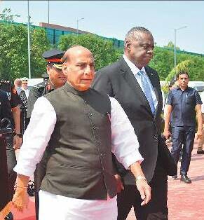 अमरीका के रक्षा मंत्री ने सोमवार को रक्षा मंत्री राजनाथ सिंह की उपस्थिति में तीनों सेना के गार्ड ऑफ ऑनर का निरीक्षण किया।