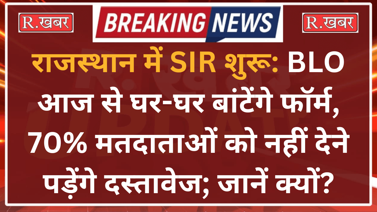 R.खबर ब्यूरो। राजस्थान सहित देश के 12 राज्यों में मंगलवार, 4 नवंबर से विशेष गहन पुनरीक्षण (SIR) अभियान की शुरुआत हो गई है। इस अभियान के तहत बूथ लेवल अधिकारी (BLO) घर-घर जाकर मतदाताओं से गणना प्रपत्र भरवाएंगे।