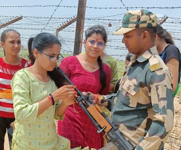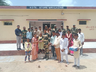 पत्रिका द्वारा बीएसएफ के जवानों के लिए आई राखियों को कोडेवाला पोस्ट पर बहिन सीमा, पूनम, प्रीति, सुमन, प्रियंसी आदि ने बंधी। जवान इस मौके पर मिले बच्चों के संदेश पढ़कर भावुक भी हो गए। इस मौके पर अर्पिता माथुर, एडवोकेट, राजस्थान उच्च न्यायालय जयपुर भी सीमा चौकी पर पहुंच कर जवानों के राखी बांधी।