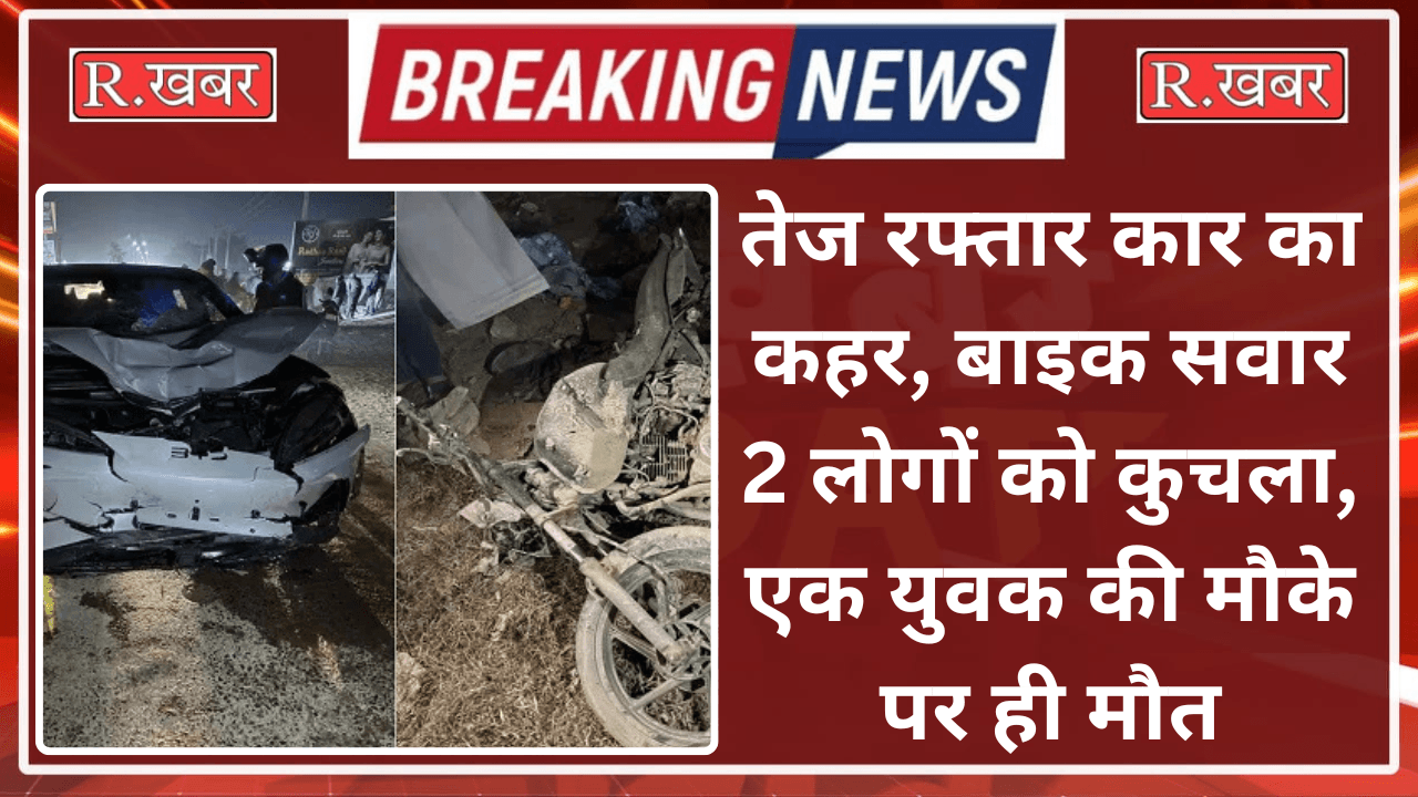 तेज रफ्तार कार का कहर, बाइक सवार 2 लोगों को कुचला, एक युवक की मौके पर ही मौत