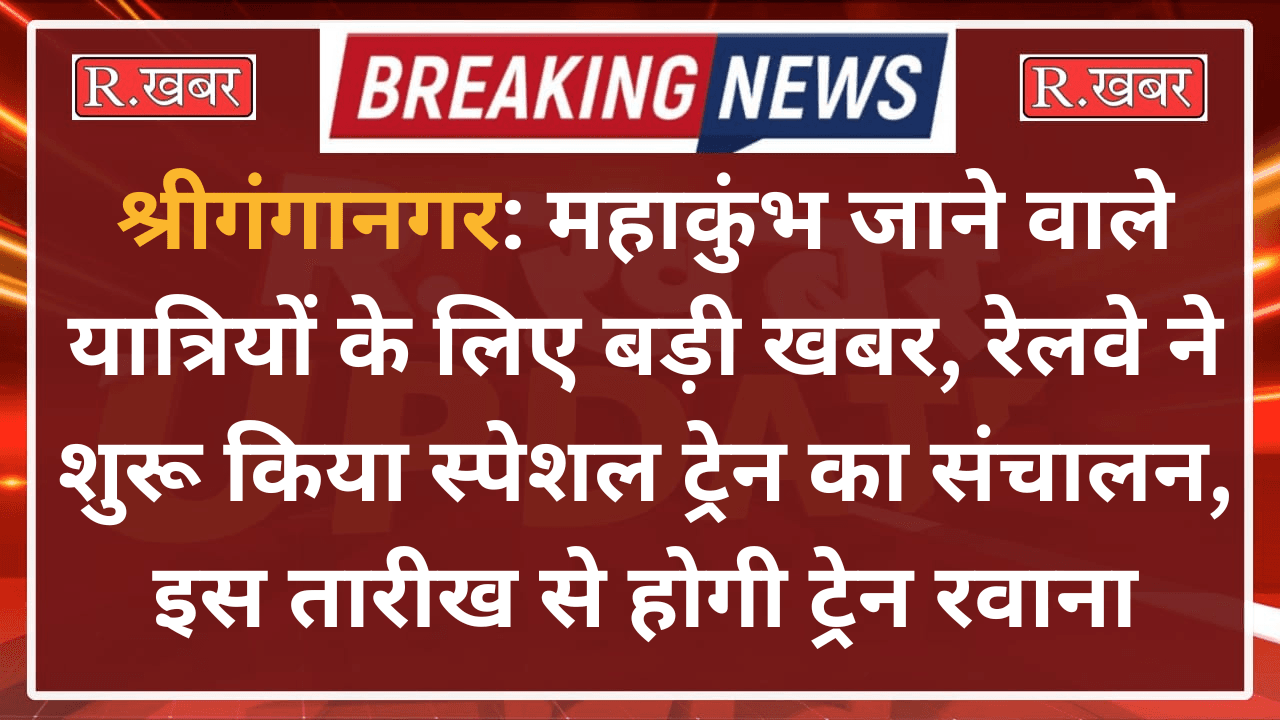 श्रीगंगानगर: महाकुंभ जाने वाले यात्रियों के लिए बड़ी खबर, रेलवे ने शुरू किया स्पेशल ट्रेन का संचालन, इस तारीख से होगी ट्रेन रवाना