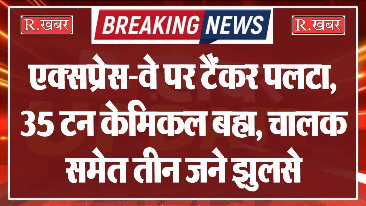 एक्सप्रेस-वे पर टैंकर पलटा, 35 टन केमिकल बहा, चालक समेत तीन जने झुलसे