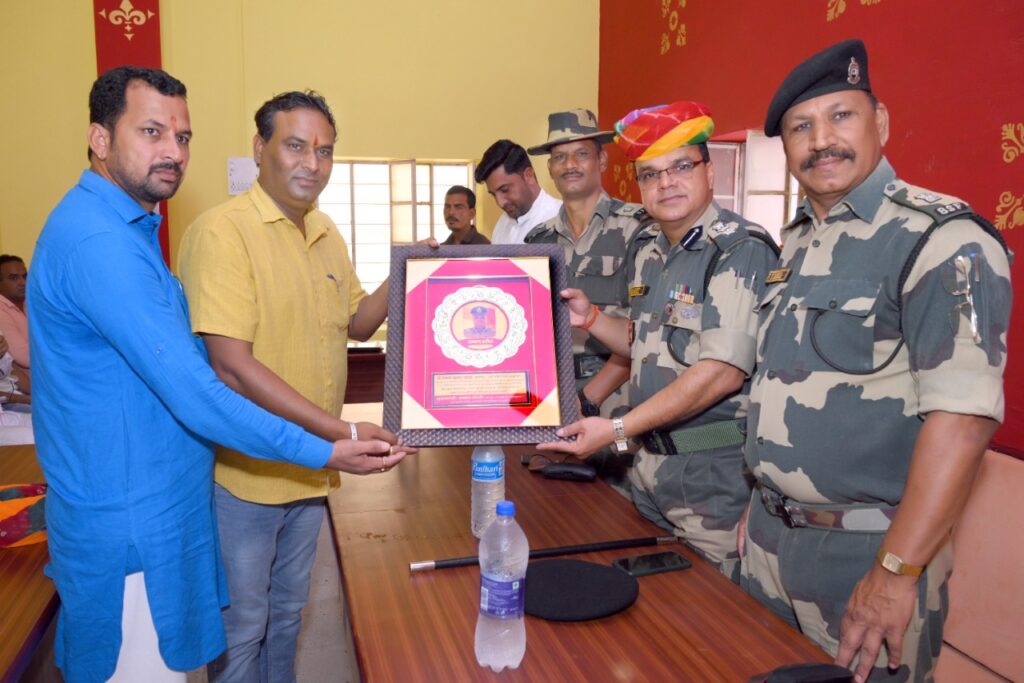 नगरपालिका भवन खाजूवाला में सीमा सुरक्षा बल के कमांडेंट का सम्मान।