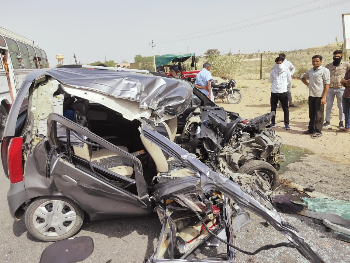 इसी दौरान सामने से आ रही पिकअप गाड़ी ने जबर्दस्त टक्कर मार दी। कार का अगला हिस्सा पूरी तरह क्षतिग्रस्त हो गया। इसके साथ गजेंद्र सिंह चौहान की मौके पर ही मौत हो गई। पत्नी शूचि चौहान और बच्चे की साँसे चल रही थी। उन्हें तुरंत श्रीडूंगरगढ़ अस्पताल ले गए, लेकिन तब तक उनकी भी मौत हो गई। हादसा कितासर से श्रीडूंगरगढ़ की और टैगोर स्कूल के पास हुआ।