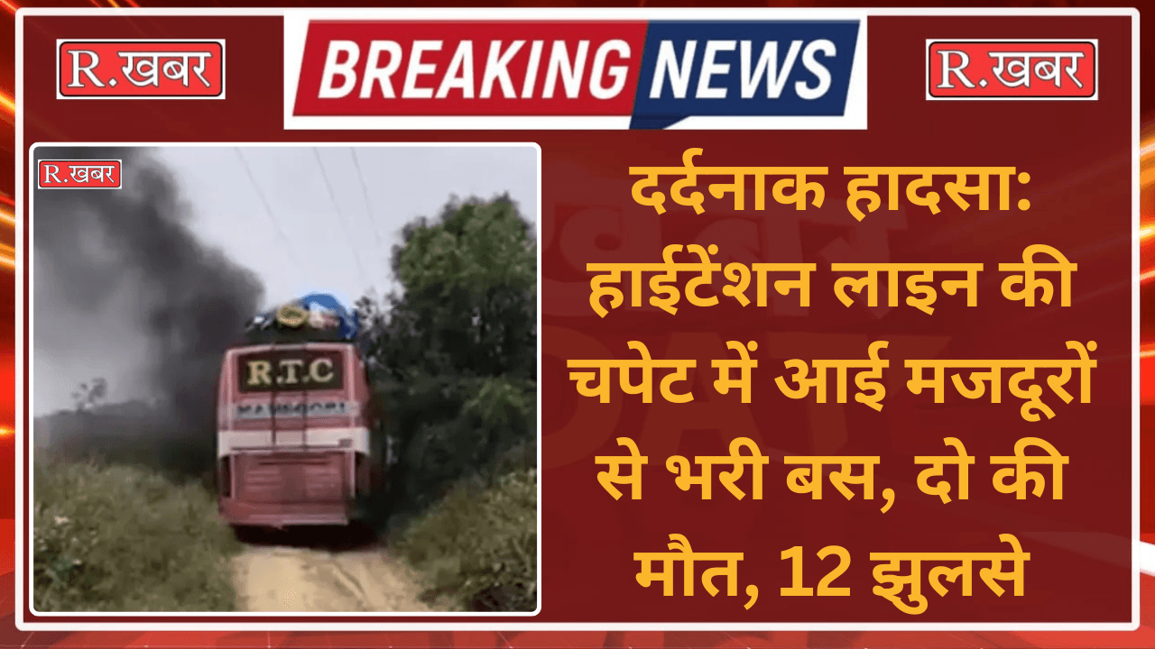 दर्दनाक हादसा: हाईटेंशन लाइन की चपेट में आई मजदूरों से भरी बस, दो की मौत, 12 झुलसे