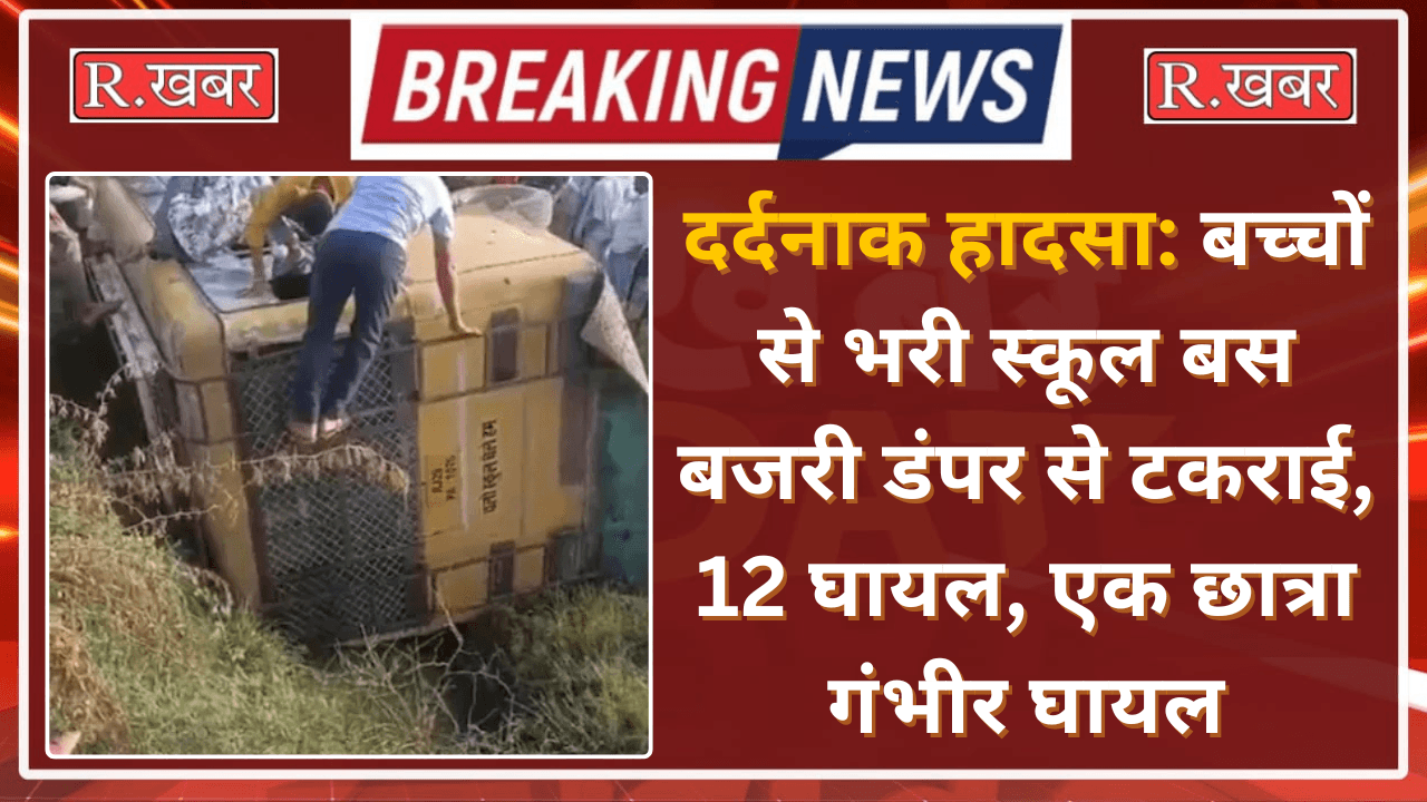 दर्दनाक हादसा: बच्चों से भरी स्कूल बस बजरी डंपर से टकराई, 12 घायल, एक छात्रा गंभीर घायल