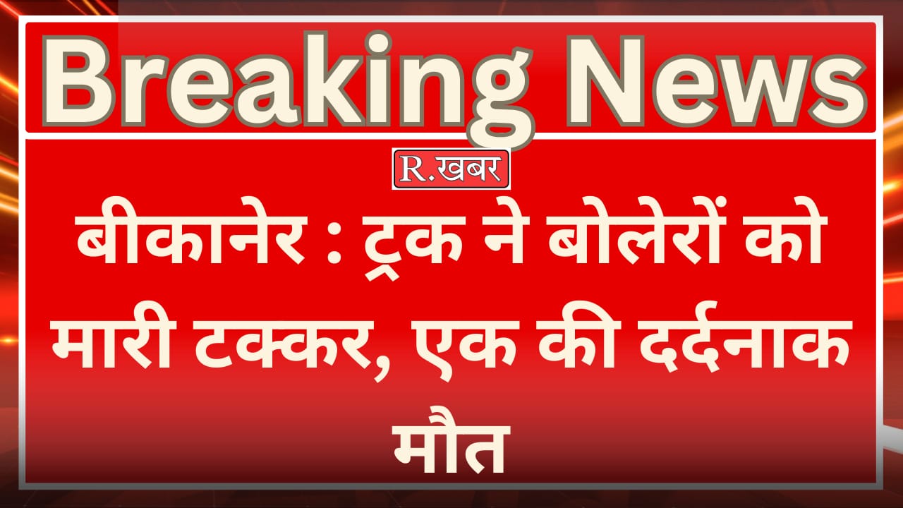 R.खबर, बीकानेर। हाइवे पर ट्रक ने बोलेरो को टक्कर मार दी। हादसे में एक जने की मौत हो गई। जबकि उसके साथी को चोटें आई है। यह हादसा श्रीडूंगरगढ़ पुलिस थाना क्षेत्र में सेसूमो स्कूल के सामने हाइवे पर हुआ। राजियासर थानान्तर्गत ठुकराना निवासी राकेश पुत्र प्रेमाराम ने इस आशय की रिपोर्ट श्रीडूंगरगढ़ थाने में दी है। रिपोर्ट में आरोप लगाया है कि ट्रक के चालक ने गफलत व लापरवाही से ट्रक को चलाते हुए बोलेरो गाड़ी से जा रहे उसके भाई नेतराम व उसके साथियों को टक्कर मार दी। हादसे में उसके भाई नेतराम की मौत हो गई। जबकि उसके साथियों को भी चोटें आई है।पुलिस ने रिपोर्ट पर आरोपी चालक के खिलाफ मामला दर्ज कर आगे की कार्रवाई शुरू कर दी है।